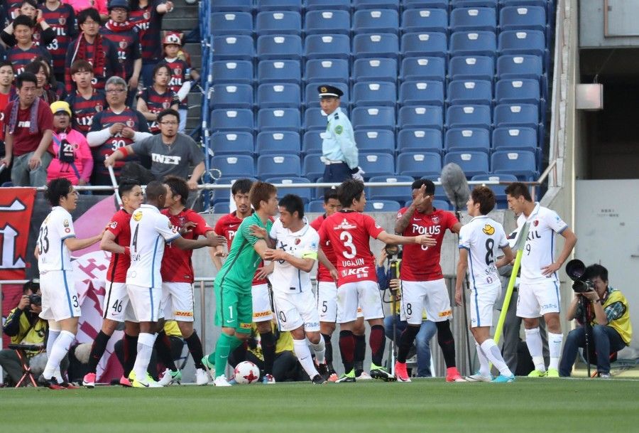 問題になったシーンは後半33分だった。浦和のDF槙野智章が自陣コーナー付近でボールをキープした鹿島MF土居聖真と競り合い、そこにFW興梠慎三がサポートに入る。主審が笛を吹き浦和ボールとなったが、判定後に興梠が土居を突き飛ばしたことに鹿島側が猛抗議し、両チームがもみ合いになった。最終的に興梠にイエローカードが提示されて事態は収まるが、その輪の中に小笠原満男、森脇、レオ・シルバもいた。