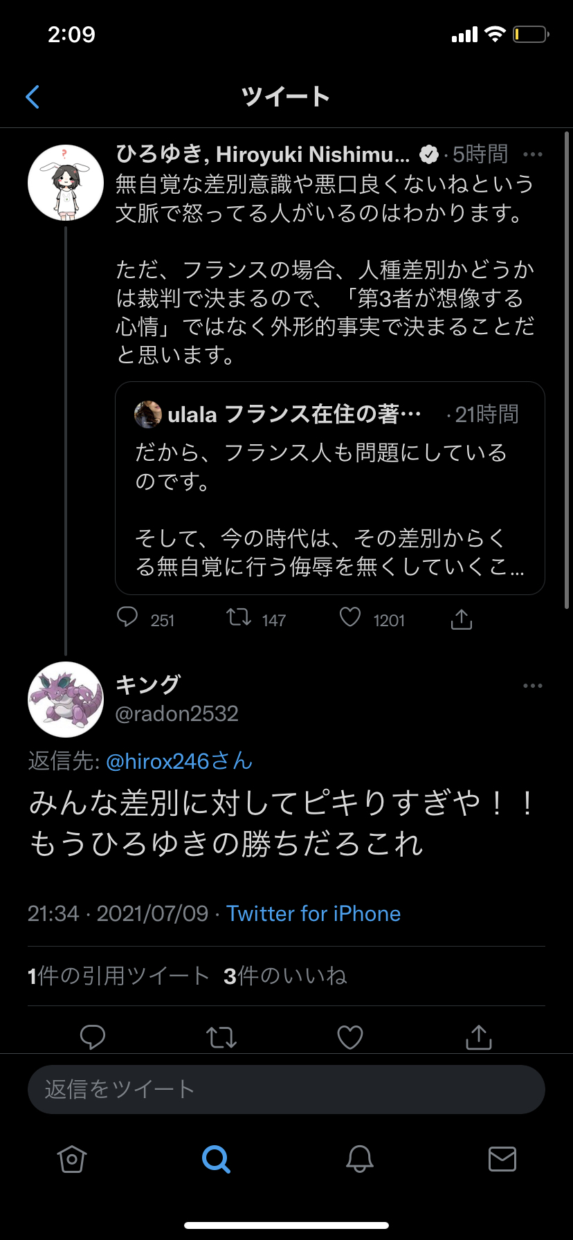 たらこレスバ能力落ちすぎ