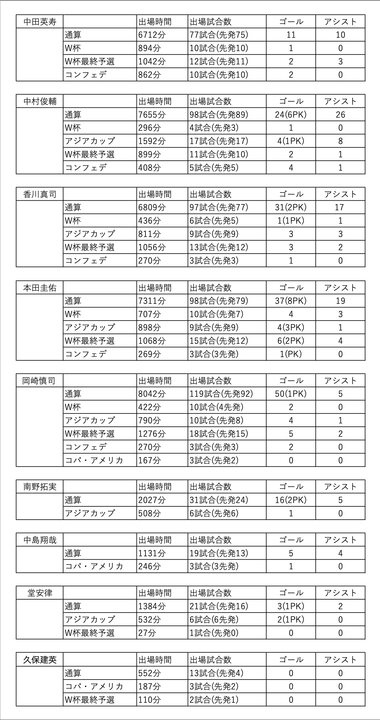 PK抜いたら最終予選の成績は香川やザキオカと同レベルやし