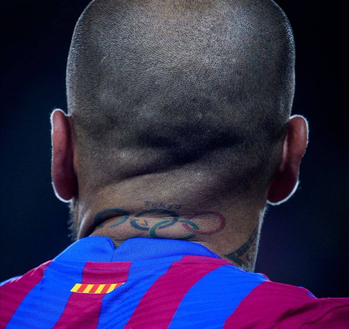 クラブはD・アウベスの首の後ろを撮った写真をアップ。そこには「Tokyo」の文字と五輪マークのタトゥーが刻まれている。